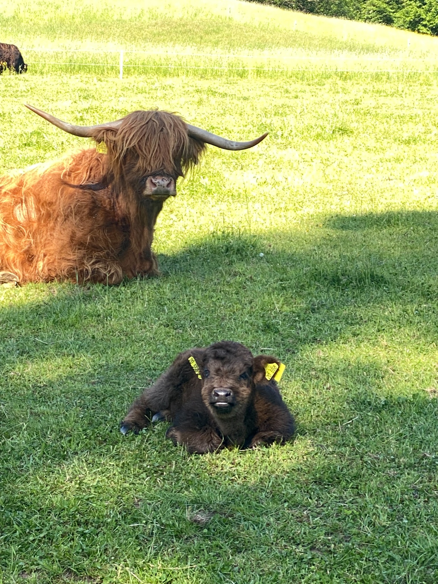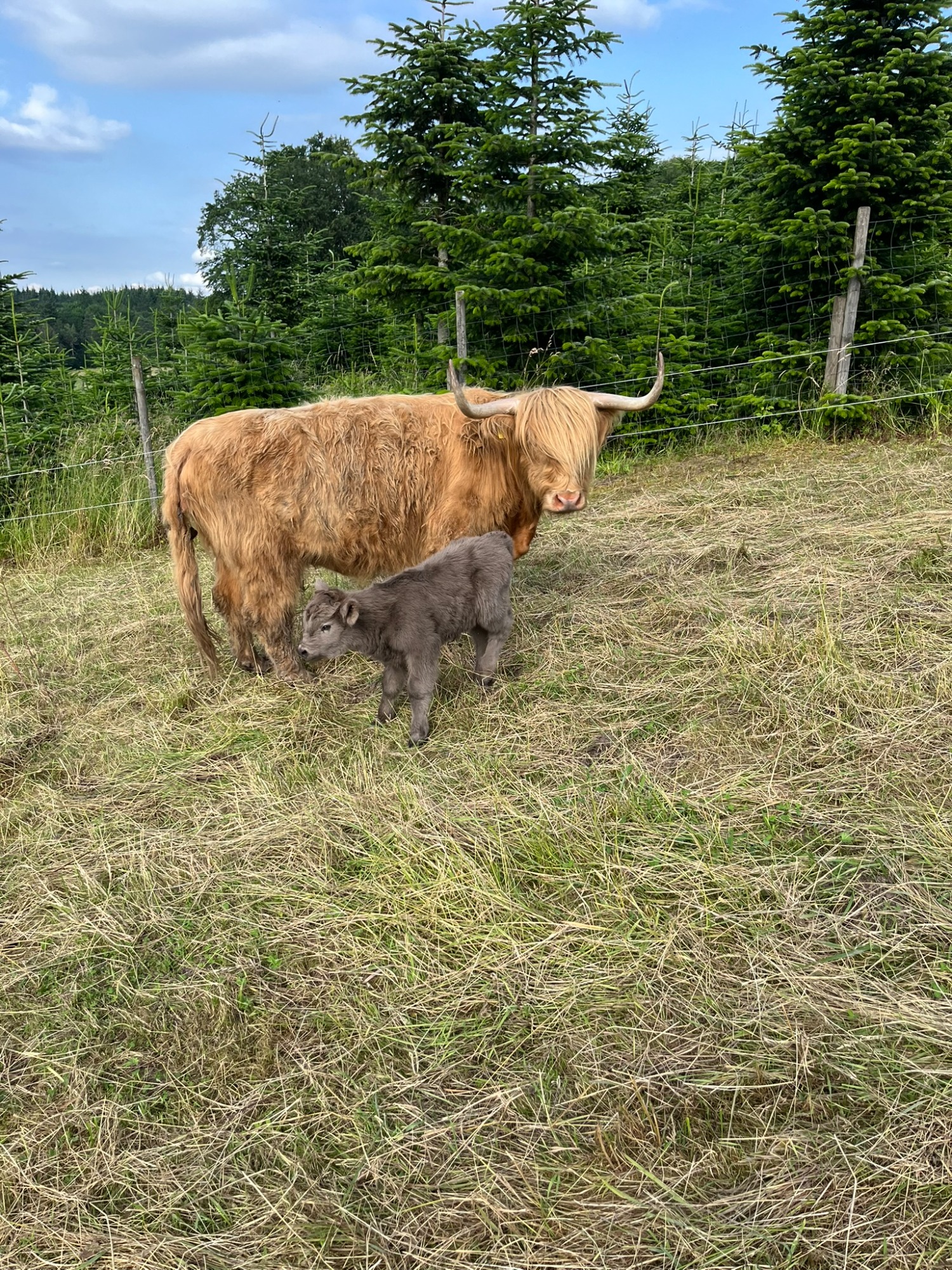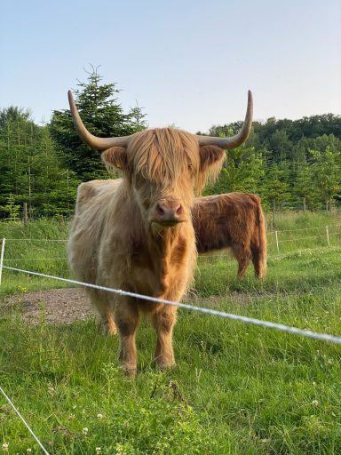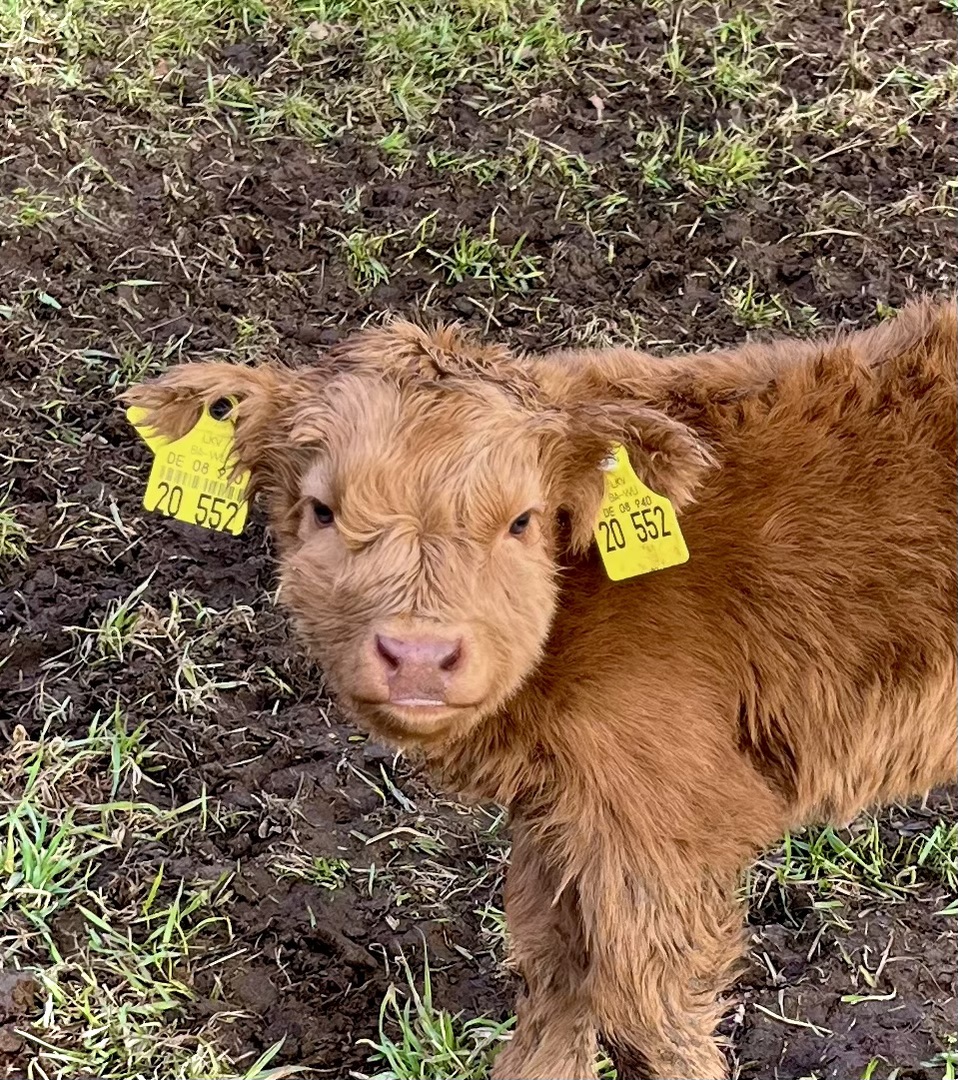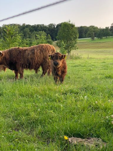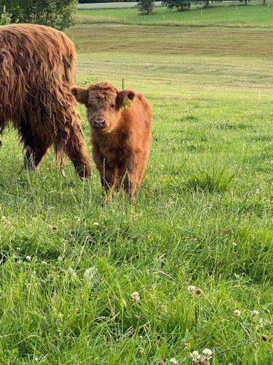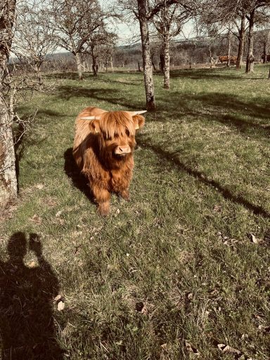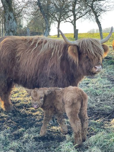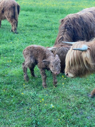 5 Hochlandrinder sind bei uns eingezogen, welche ganzjährig auf unseren Weiden leben.