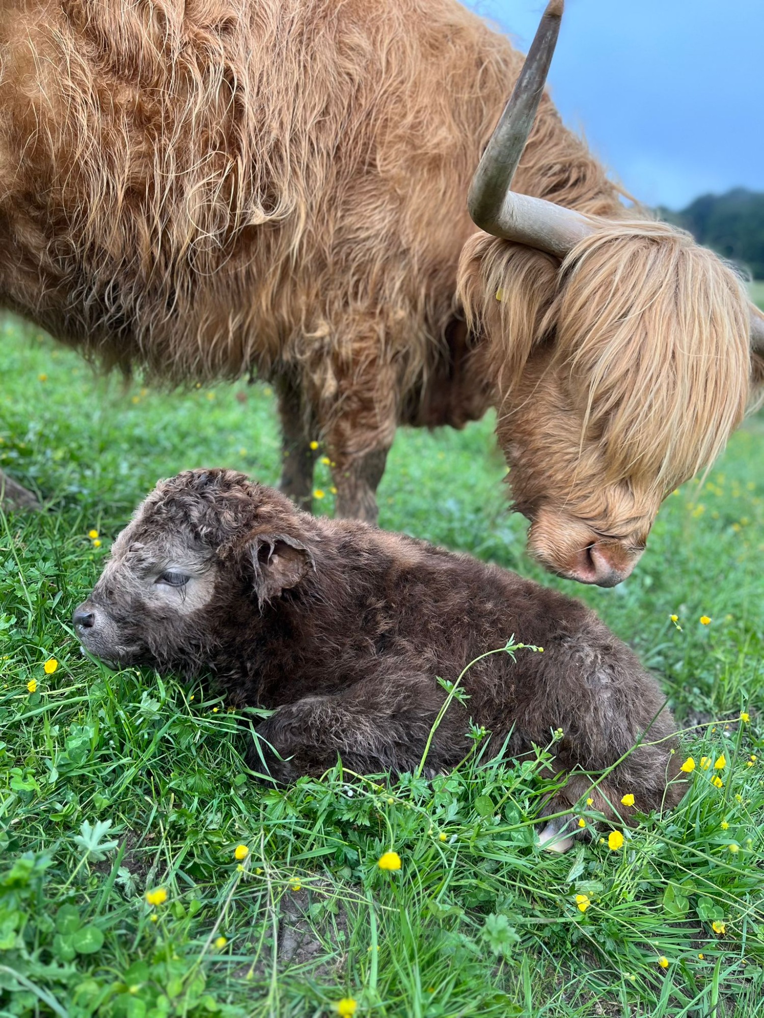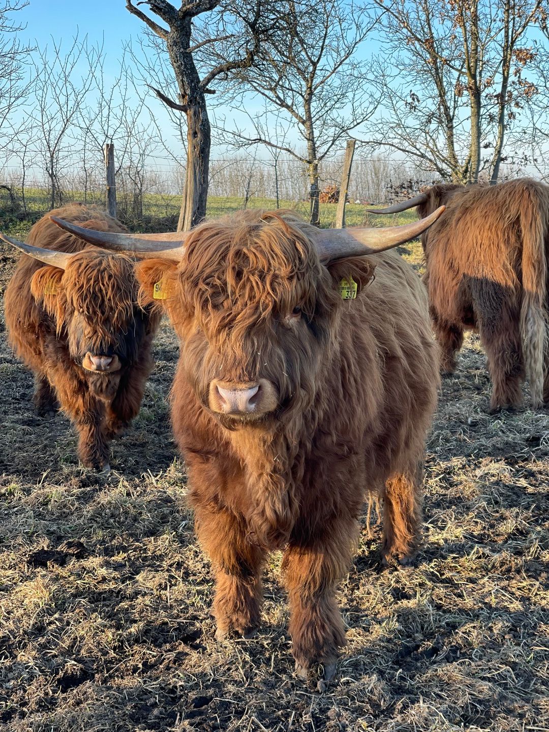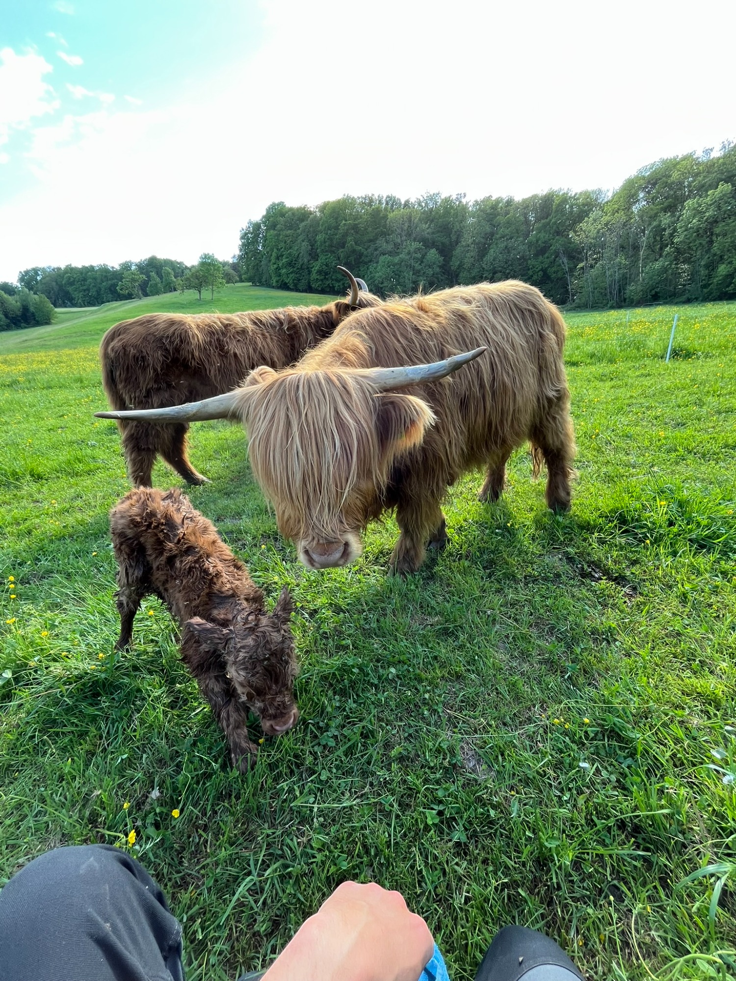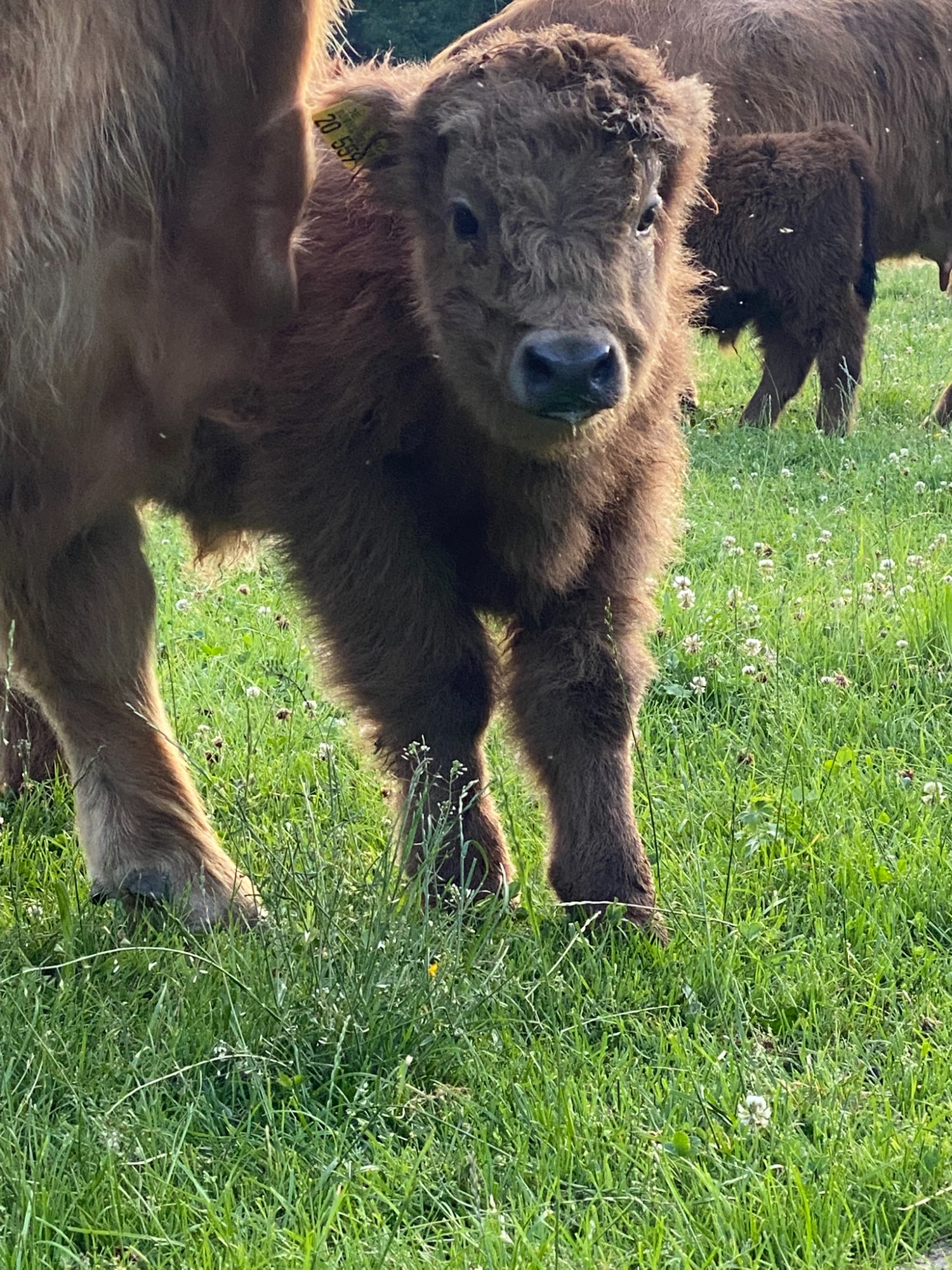 5 Hochlandrinder sind bei uns eingezogen, welche ganzjährig auf unseren Weiden leben.