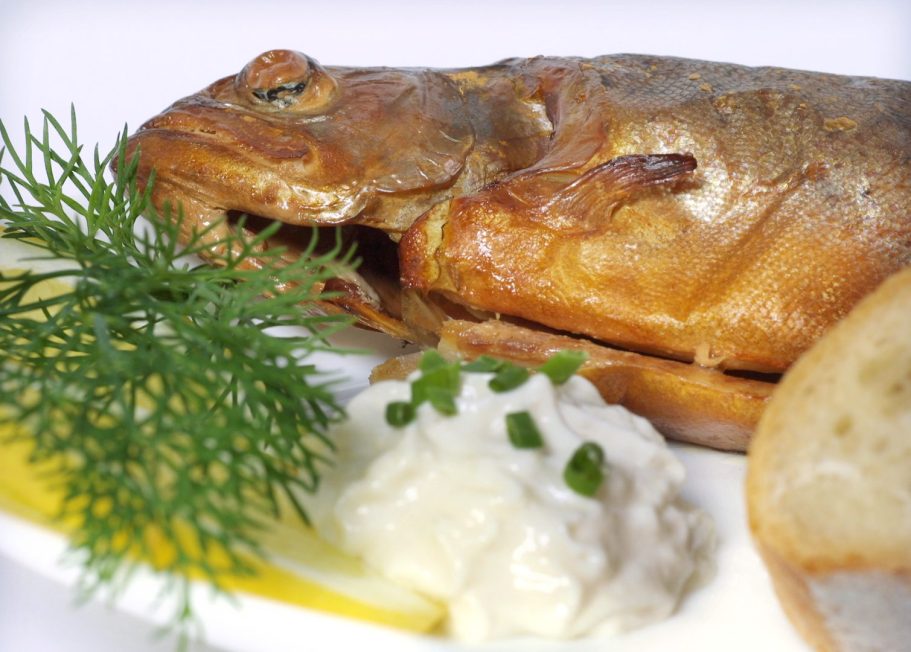 **Geräucherte Forelle mit Brot und Sahnemeerrettich**
