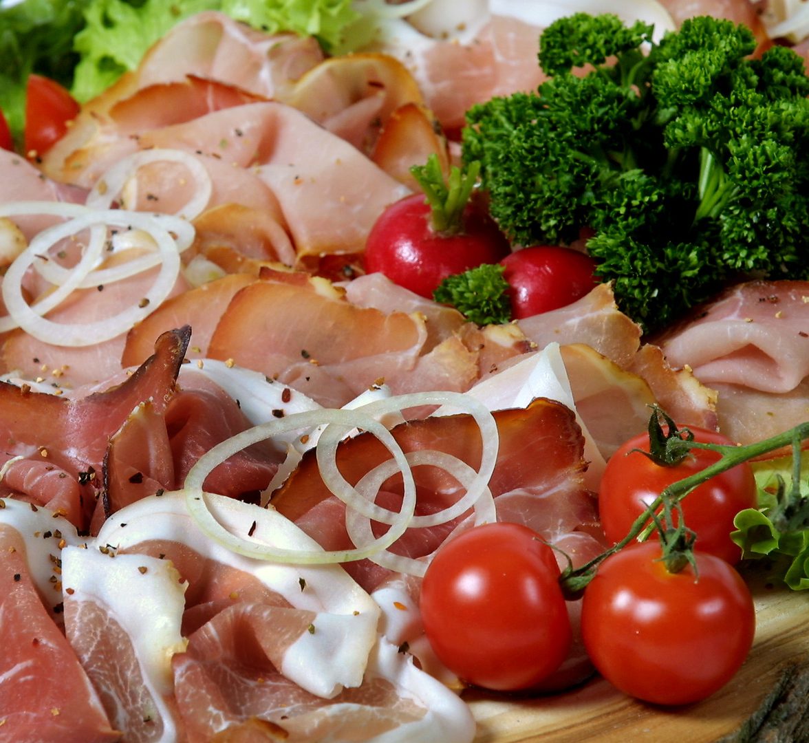 **Hausmacher Spezialitäten** Hausmacher Vesperteller, Rauchfleischteller, Belegtes Brot, Schmalzbrot